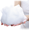 髪は最後に泡をやさしく滑らせる程度で汚れはきれいに落ちます。摩擦を最低限に抑えるためにも、なるべくきちんと泡立ててご使用ください。水に濡れると、髪の表面にあるキューティクルがこすれて傷ついてしまいます。その摩擦を抑えるために、泡が必要なのです。汚れは、界面活性剤の働きで泡が吸着し包んで、すすぎのお湯とともに流れ落ちます。摩擦軽減と、洗浄力を高めるために、液体のシャンプーはしっかりと泡立ててください。