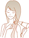 濡れた頭皮は雑菌がつきやすいので、必ずドライヤーでブローします。冷風と温風を切替え、乾いたときに髪の毛に熱が残らないようにすると、熱による痛みも防げます。