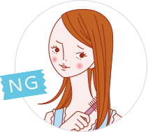 力任せにブラッシングするのはNG!傷んだ髪ほど弱いので切れ毛の原因になります。毛先からブラッシングしてからみを取り、次は髪の中間と、場所を変えながら徐々に梳かすようにしましょう。髪に無駄な力をかけずにブラッシングすることが出来ます。また静電気も髪を傷める原因になりますので、静電気の発生を防ぐブラシがおすすめです。