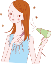 洗髪後、ドライヤーは髪が傷むからと自然乾燥させる方もいらっしゃいますがこれはNG。濡れたままの髪がこすれるとキューティクルが傷みやすくなります。また頭皮も生乾きでは雑菌が発生してしまうので、タオルでしっかりと水分を取った後はドライヤーで乾かしましょう。その際、乾きやすいからと高温の風を当て続けるのもNG。低温の風をキューティクルの流れに沿って当てるとツヤもUP。